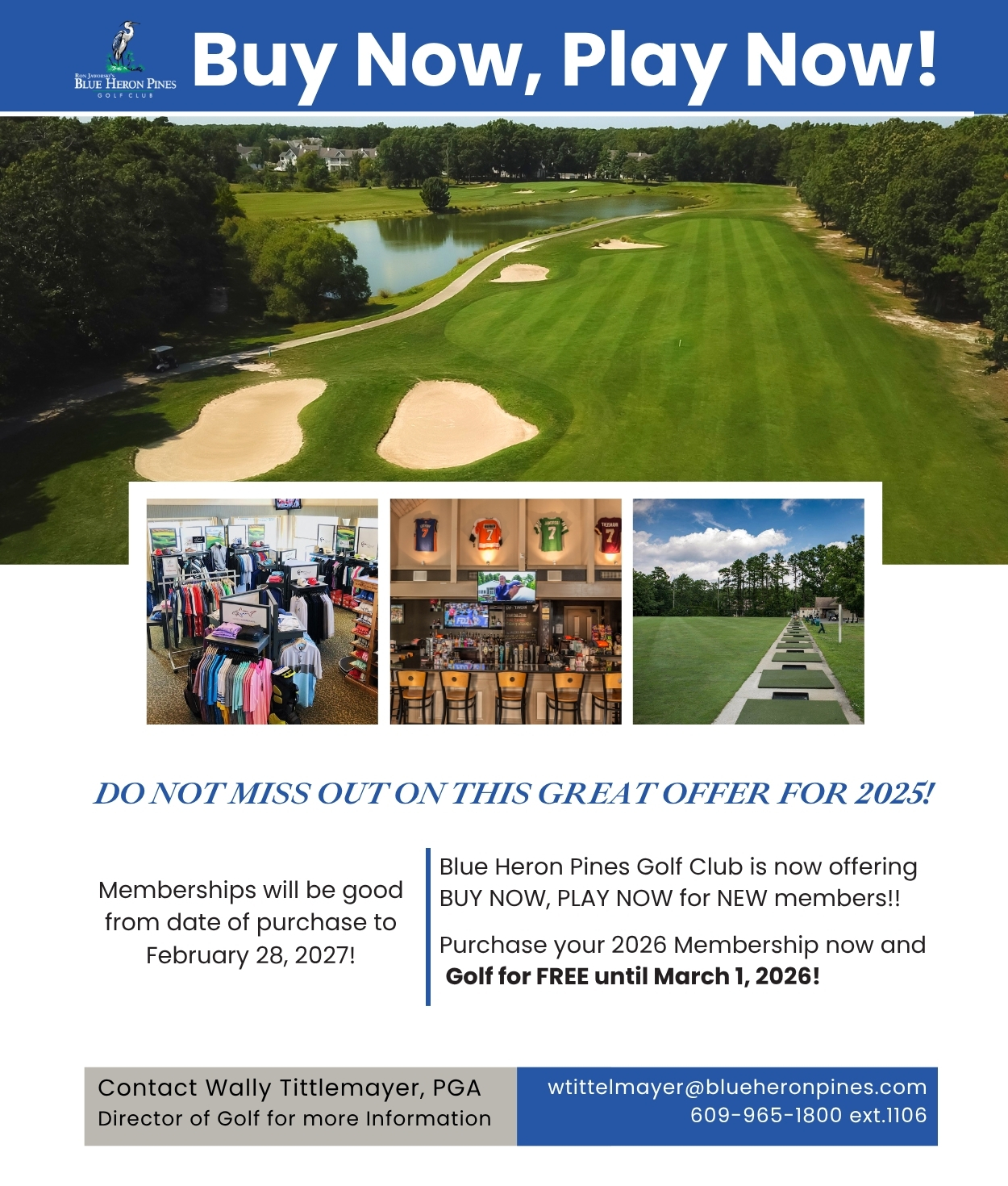 Why wait until next year to play? With Blue Heron Pines Golf Club’s Buy Now, Play Now promotion, you can lock in your 2026 season and enjoy FREE golf until March 1st, 2026!
